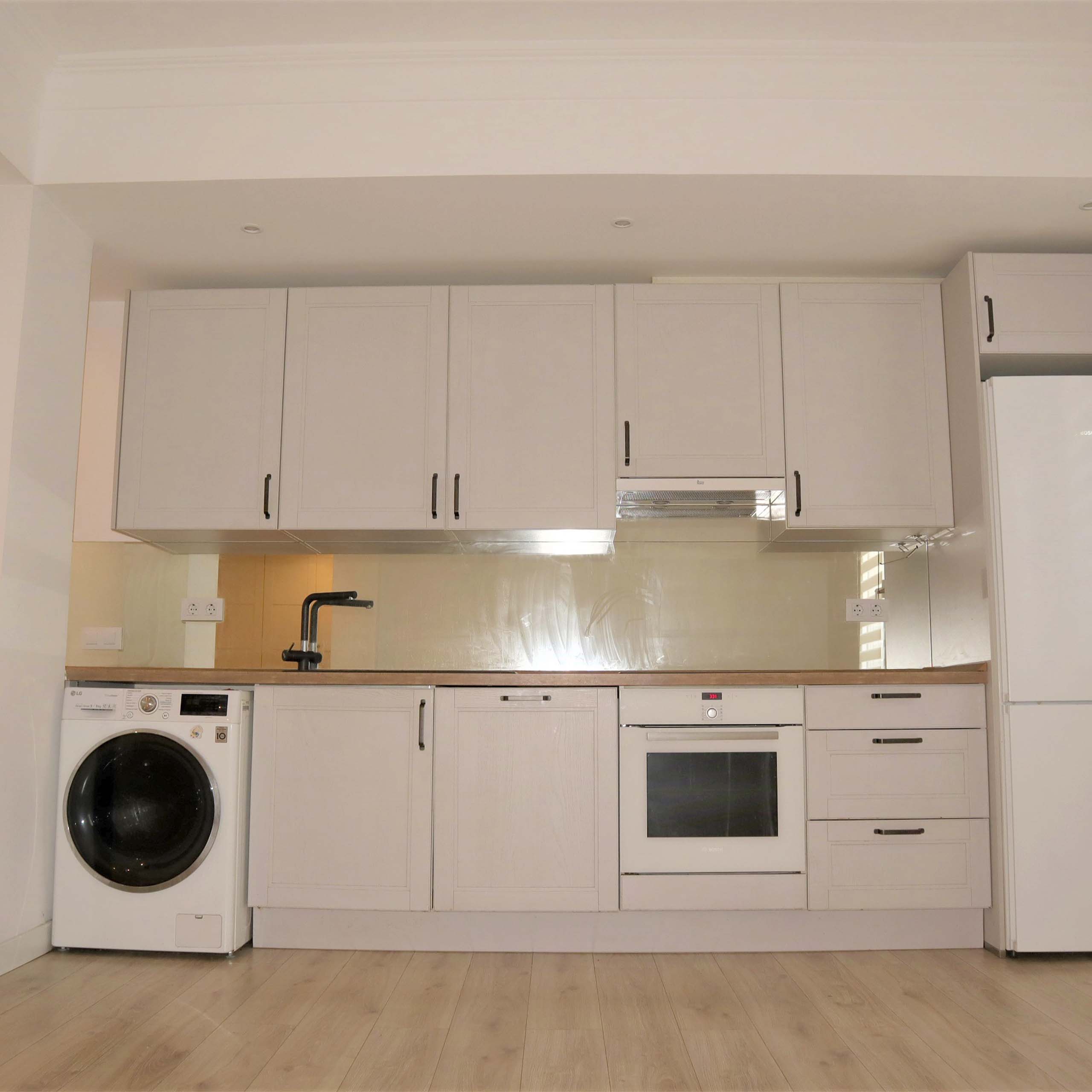 La vivienda cuenta con 110 metros distribuidos en un hall de entrada con armario empotrado de ocho cuerpos lacado en blanco y vestido, un amplio salón con cocina americana totalmente equipada con muebles altos, bajos y electrodomésticos, un cuarto a modo de despensa, 3 dormitorios y 2 baños completos con plato de ducha, (uno de los cuales integrado en el dormitorio principal).