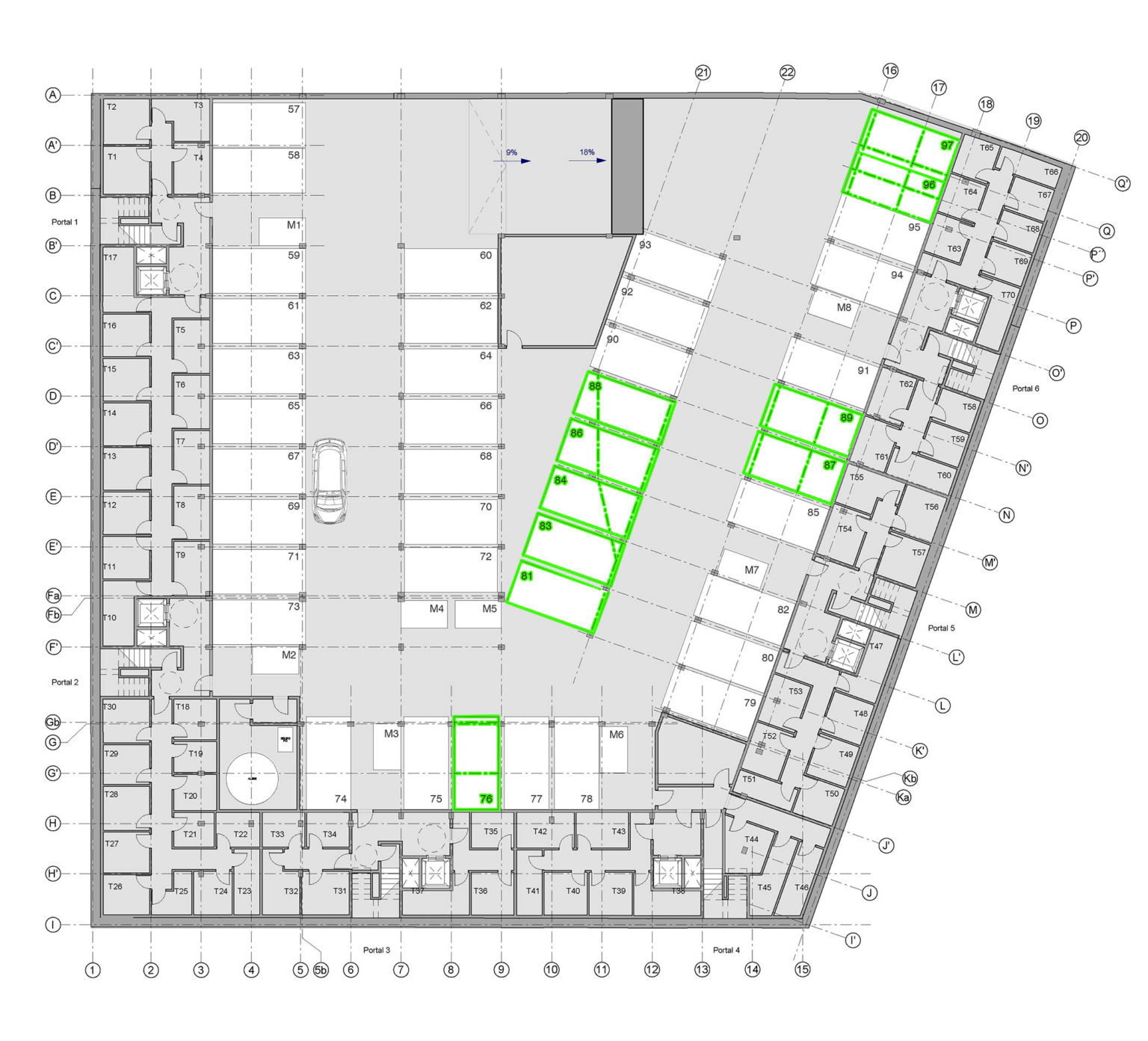 18 Plazas de garaje para coches en el Residencial Embajadores 228.