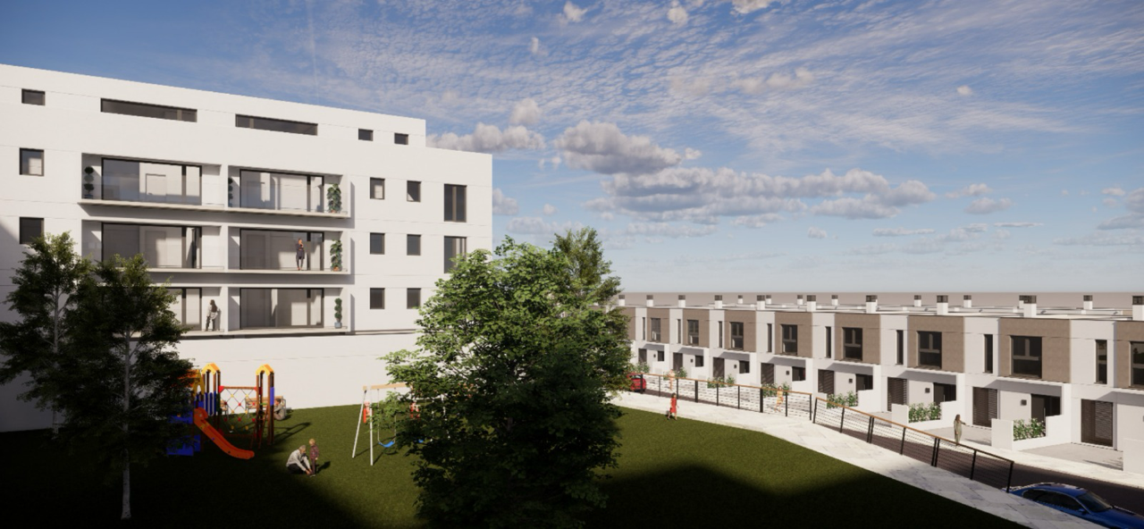 En dicho desarrollo se contará con dos tipologías de vivienda, vivienda plurifamiliar y vivienda unifamiliar, en cuanto a las manzanas donde se ubicarán las viviendas en altura, contarán de planta baja + tres, + planta ático, Las manzanas tendrán forma de “U”, dejando en su zona central un espacio habilitado para piscina y zonas comunes de recreo o juegos infantiles.