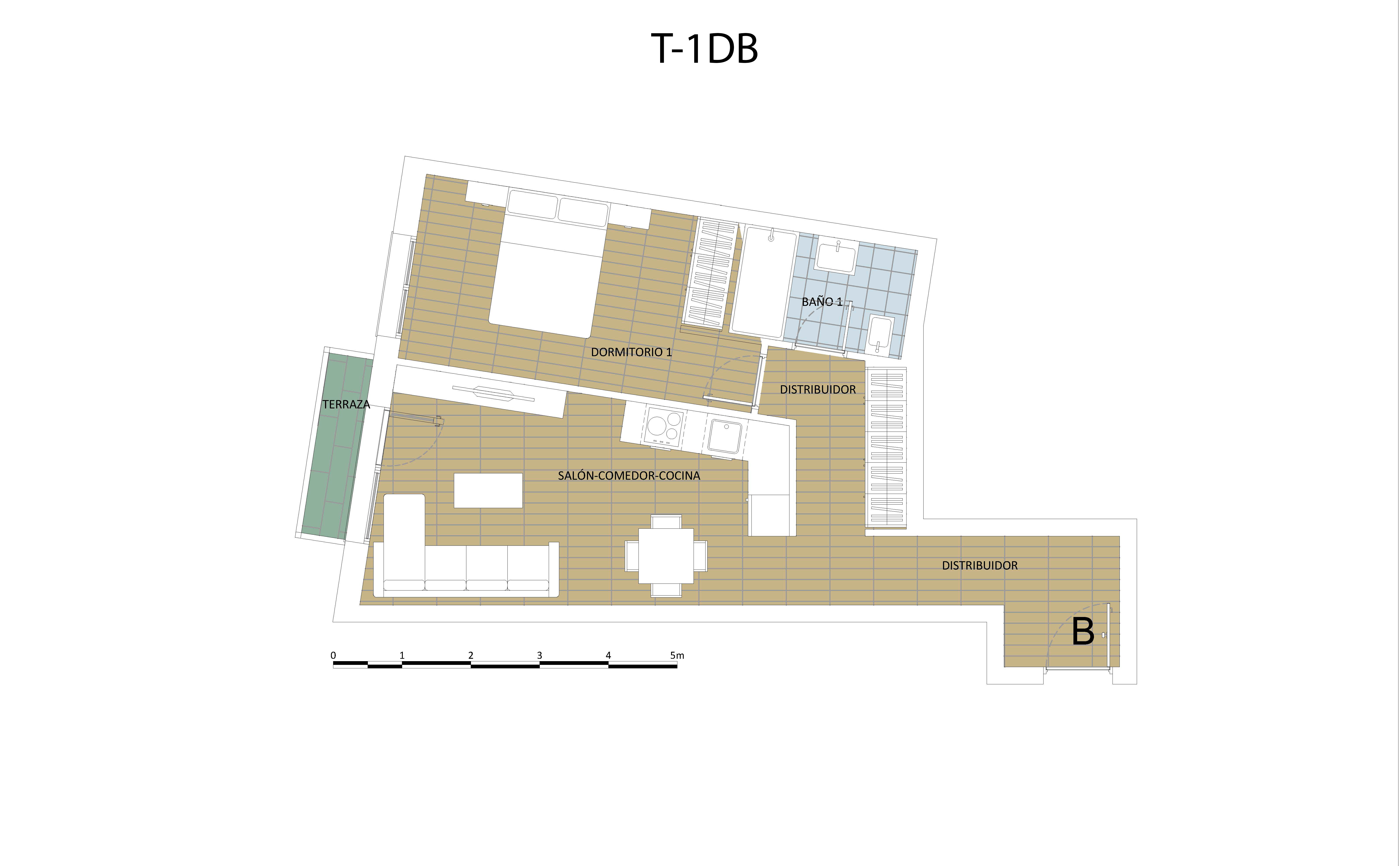 VPPB - B-1DA: (55,49m² Construidos + ZZ.CC.)+1D +1Baño+Garaje