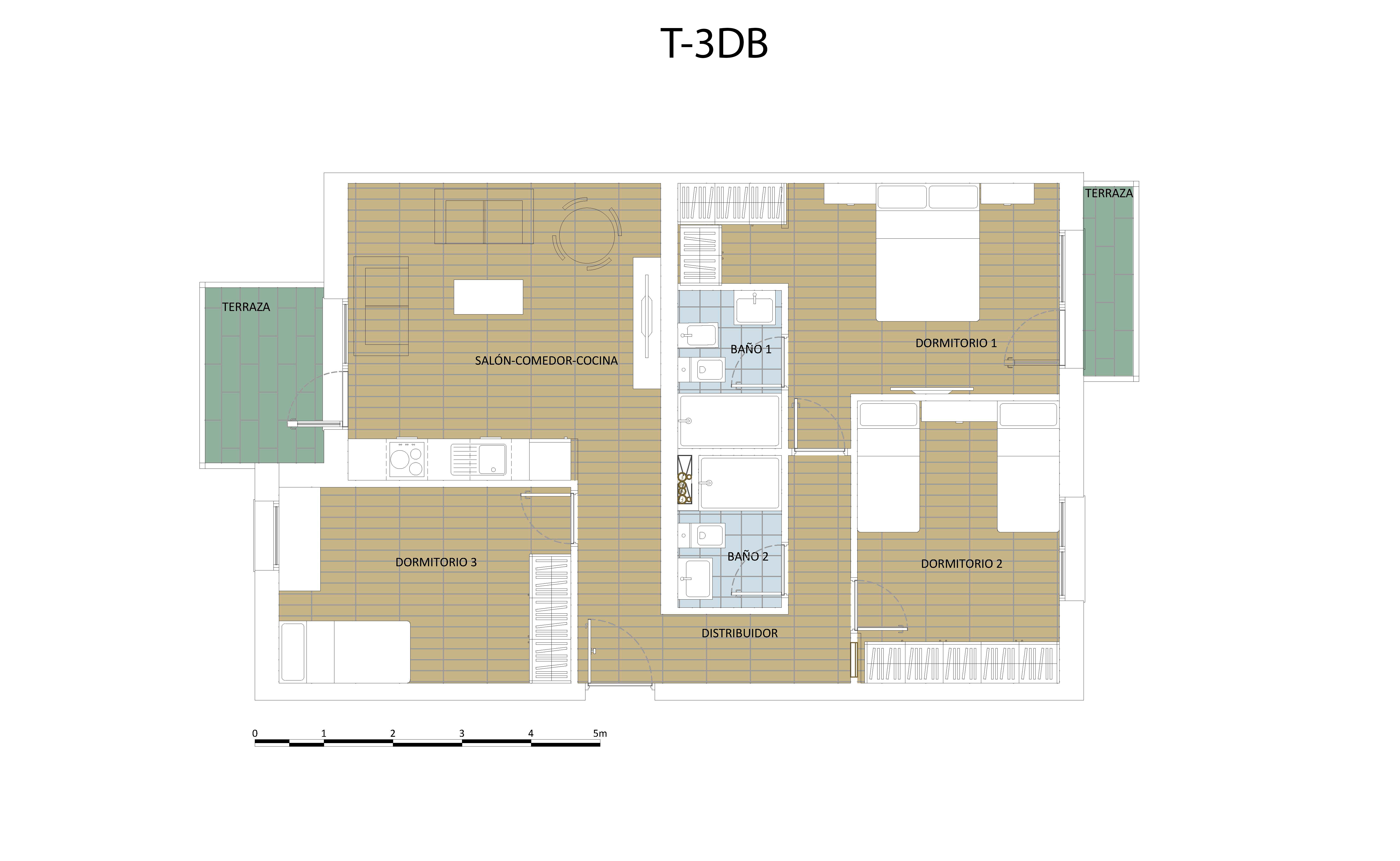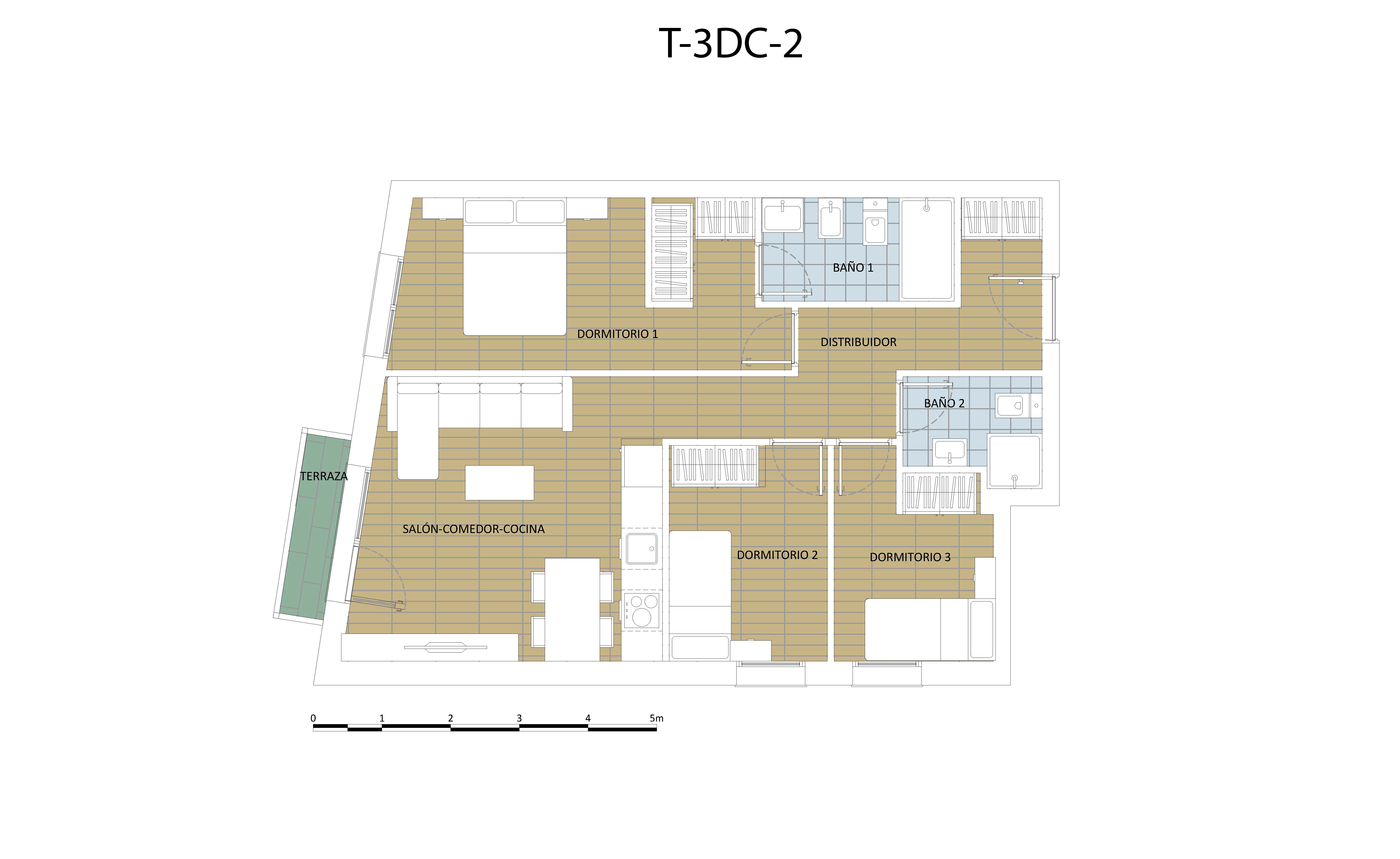 VPPB - T-2DA-3: (77,62m² Construidos + ZZ.CC.)+2D +2Baño+Garaje