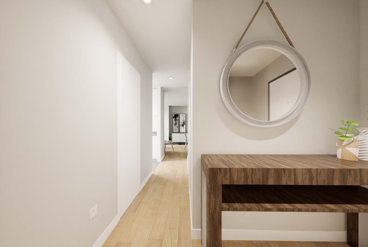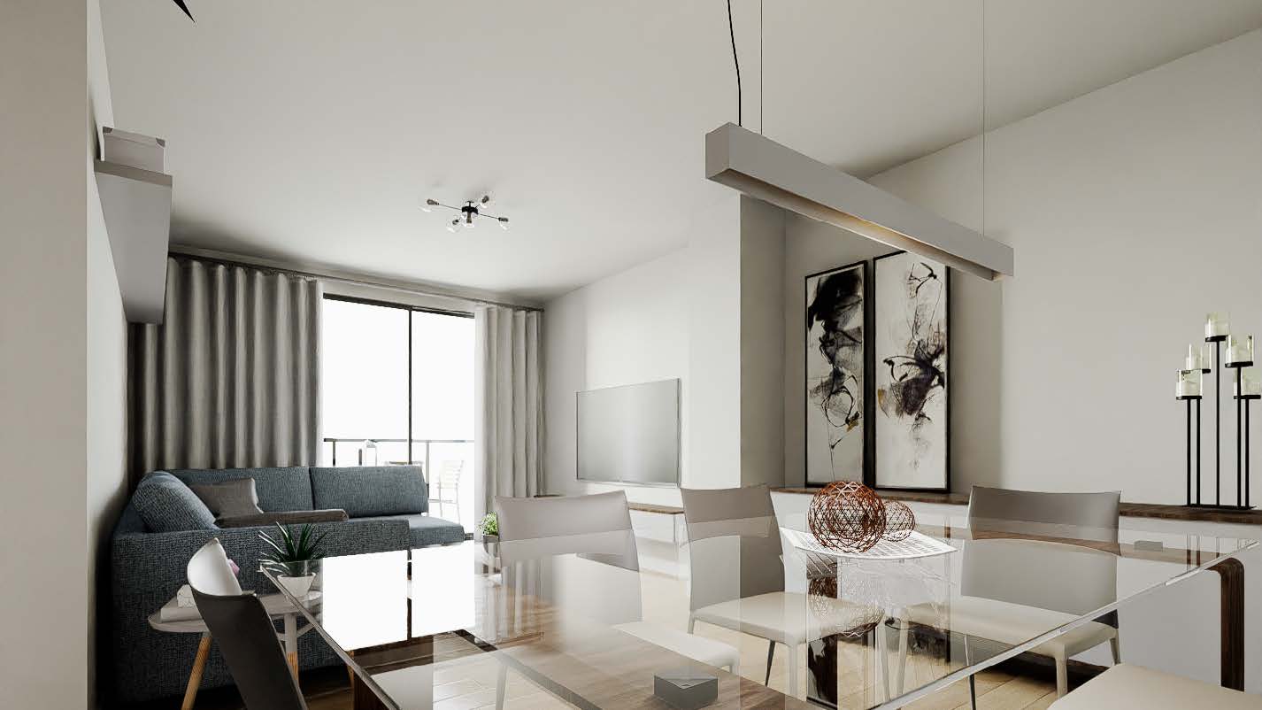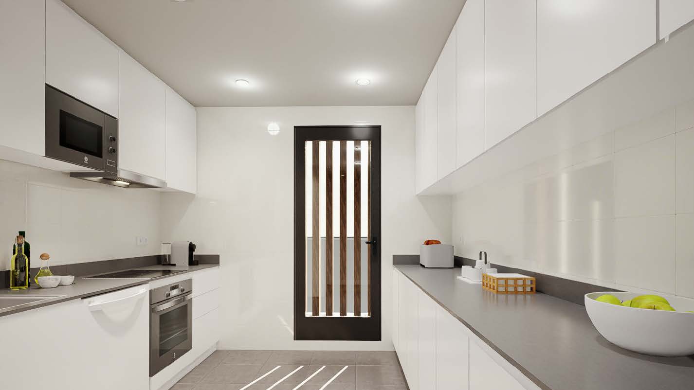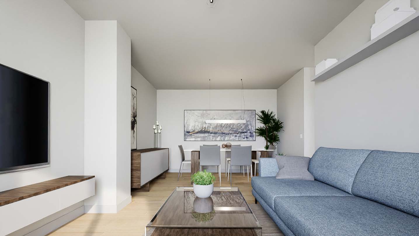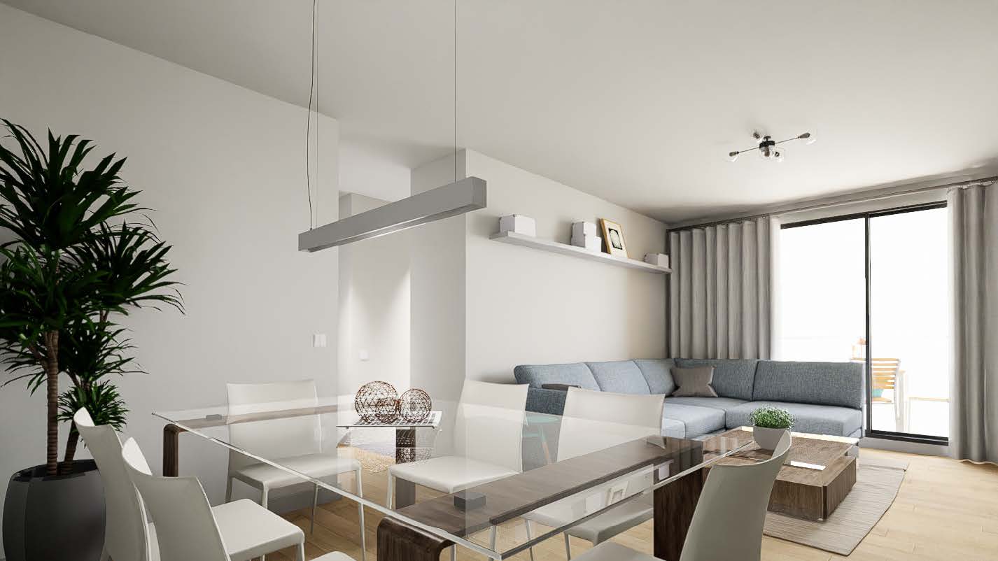 Las viviendas, de 1, 2 y 3 dormitorios, se diseñan optimizando los espacios y a su vez creando sensación de calidez y confort. Existe la opción de personalizar a 4 dormitorios las viviendas son todas exteriores, hacia la vía pública y/o hacia la urbanización. Su diseño interior está pensado en la forma actual de como se habita en una vivienda, teniendo los espacios de salón, comedor y cocina interconectados de una manera u otra, para de ese modo estar en contacto y pasar momentos en familia.