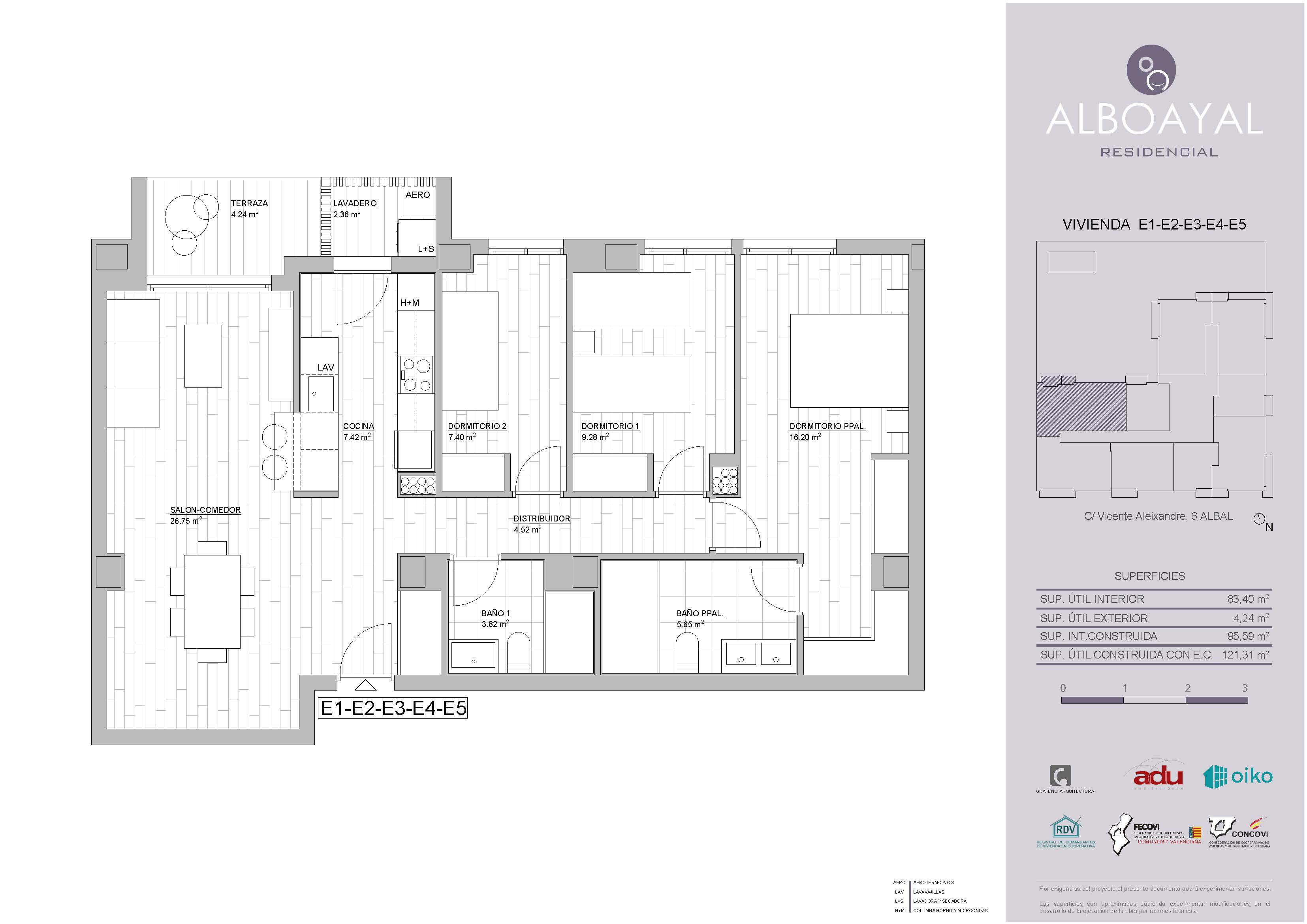 | VIV. E3 | 3D+2B | 83,40 | 4,24 | 87,64 | 99,13 | 121,31 | 236.313,92 € |
