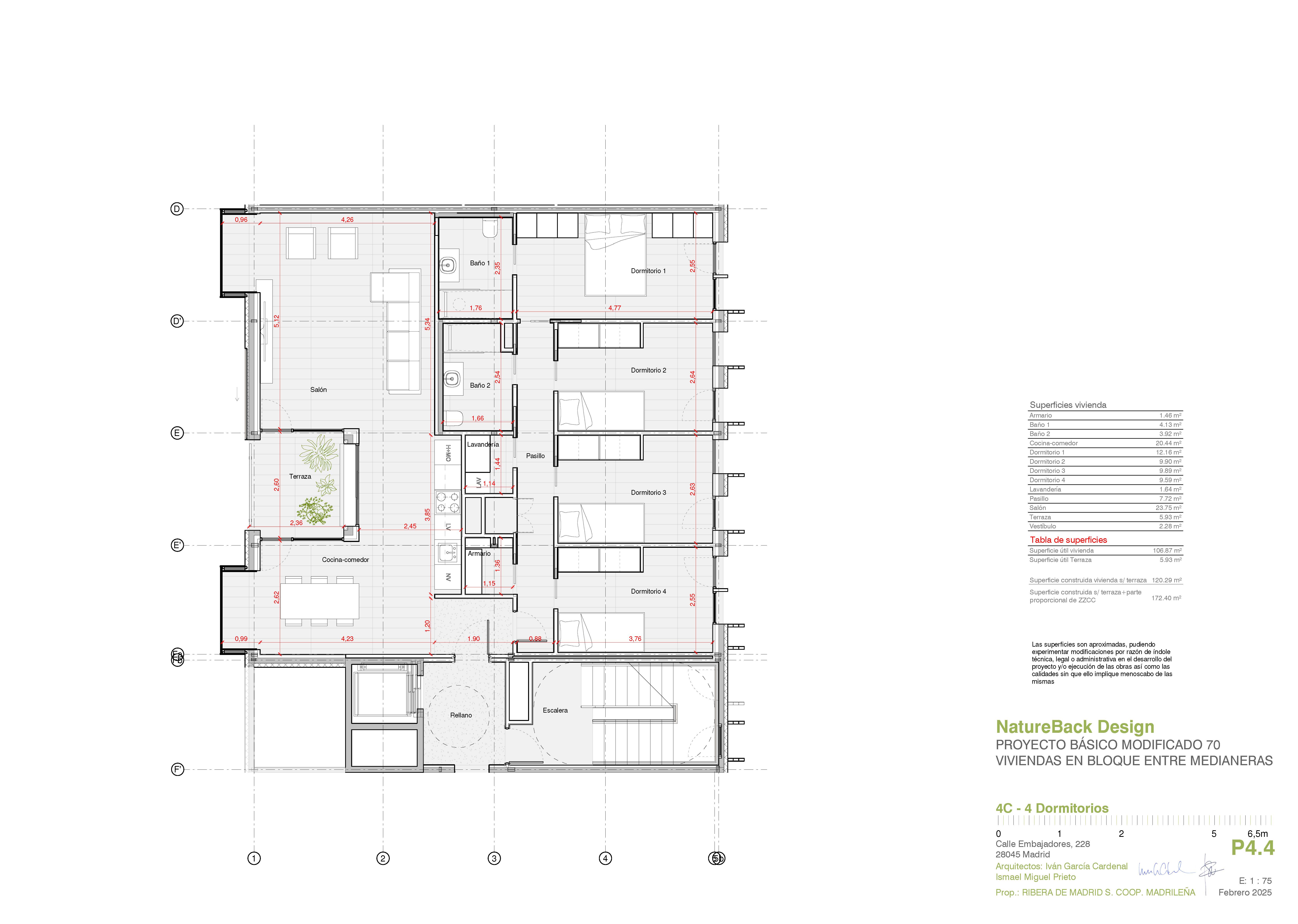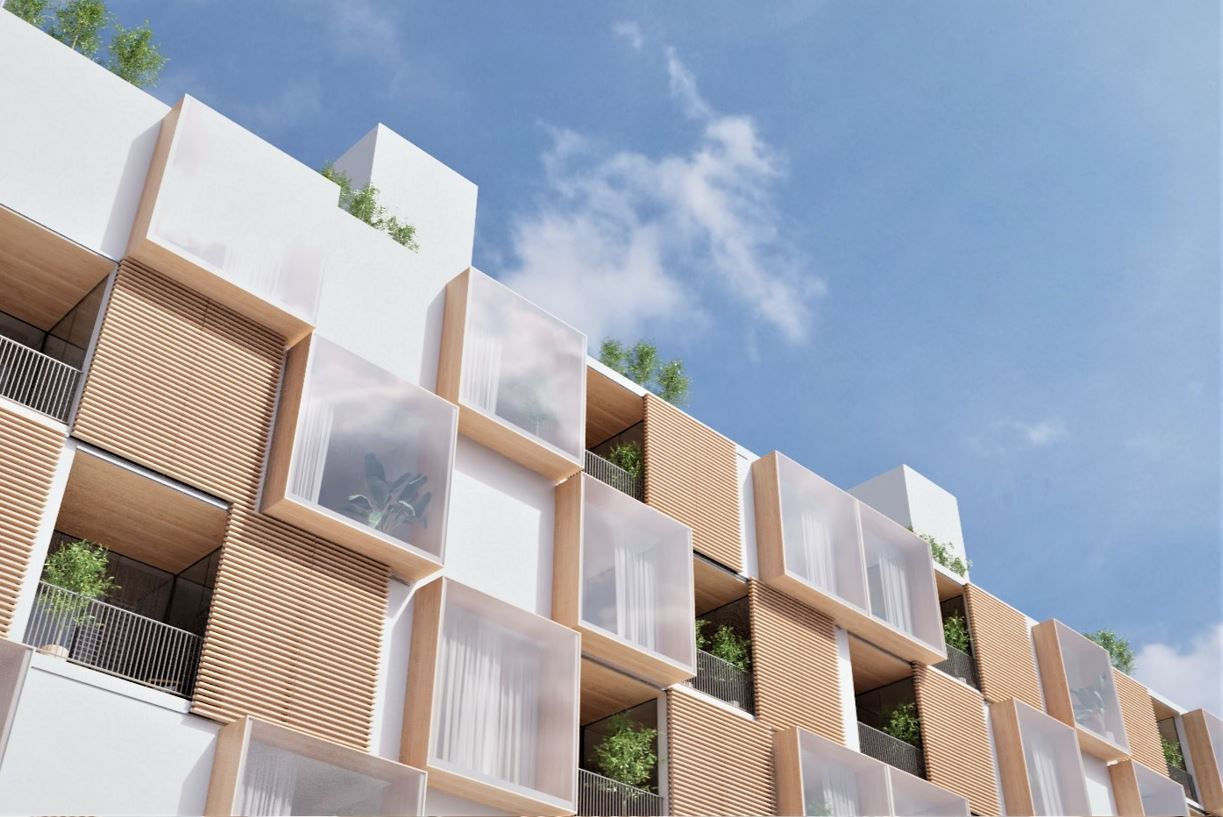 El edificio que se proyectará tendrá una altura máxima de 5 plantas (bajo-dúplex, 4 plantas y ático) con viviendas que van desde los 1 a 4 dormitorios y contará con bajos-dúplex con jardín y áticos, así como viviendas tipo dotadas con terrazas.