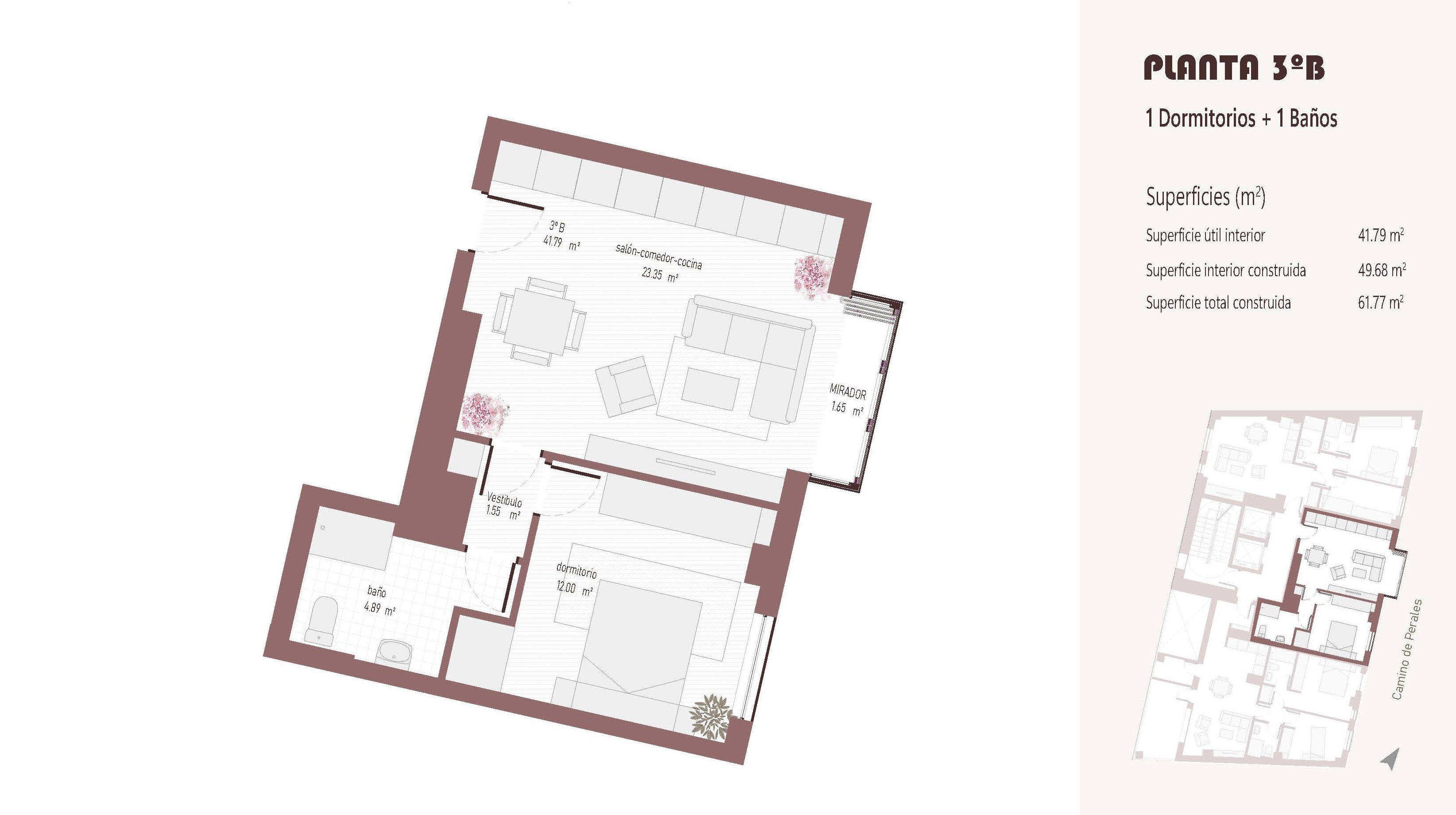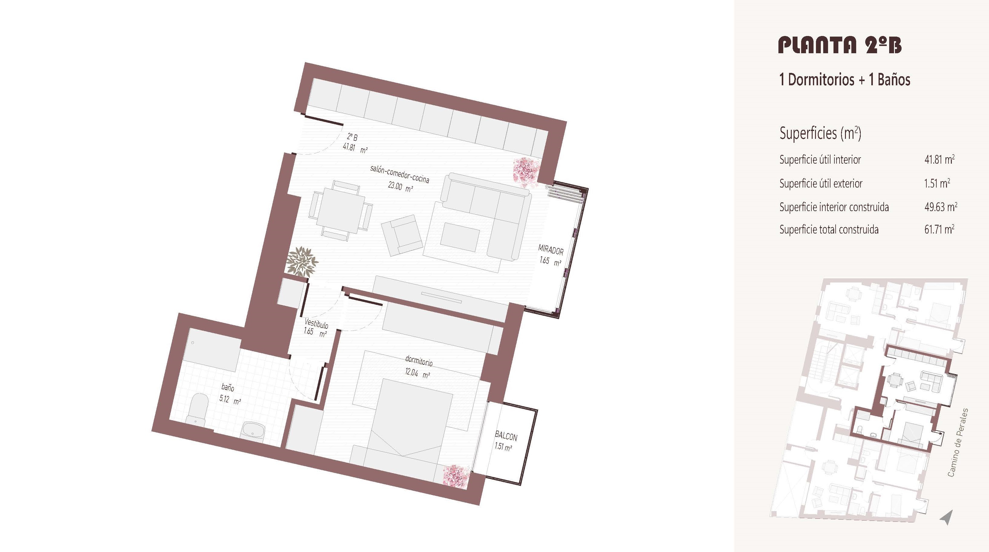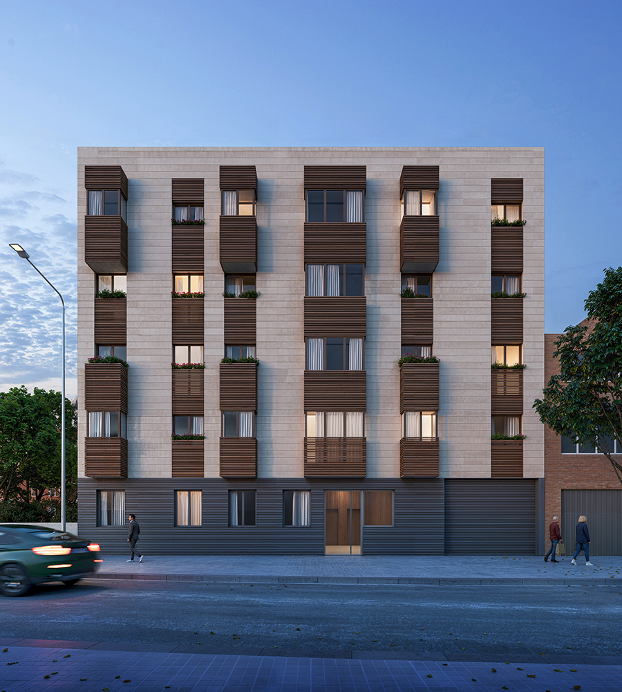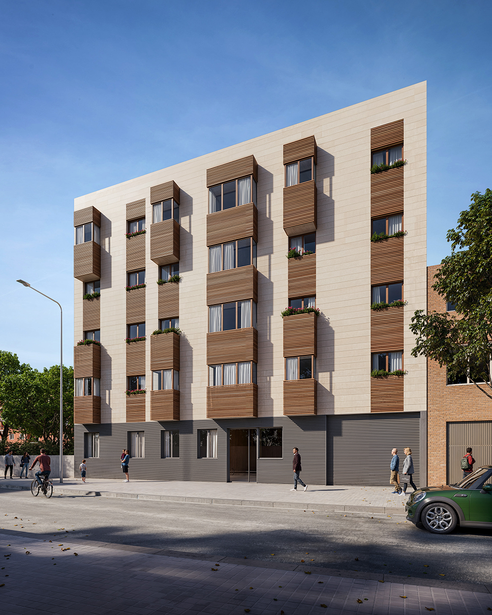 Este Residencial, se ubicará en la calle Camino de Perales 26, Madrid y contará con 16 exclusivas viviendas de 1, 2 y 3 dormitorios, bajo con jardín y 2 áticos, en urbanización privada con zona común y piscina. El Residencial cuenta además con 27 plazas de garaje y 16 trasteros, en el sótano del edificio.