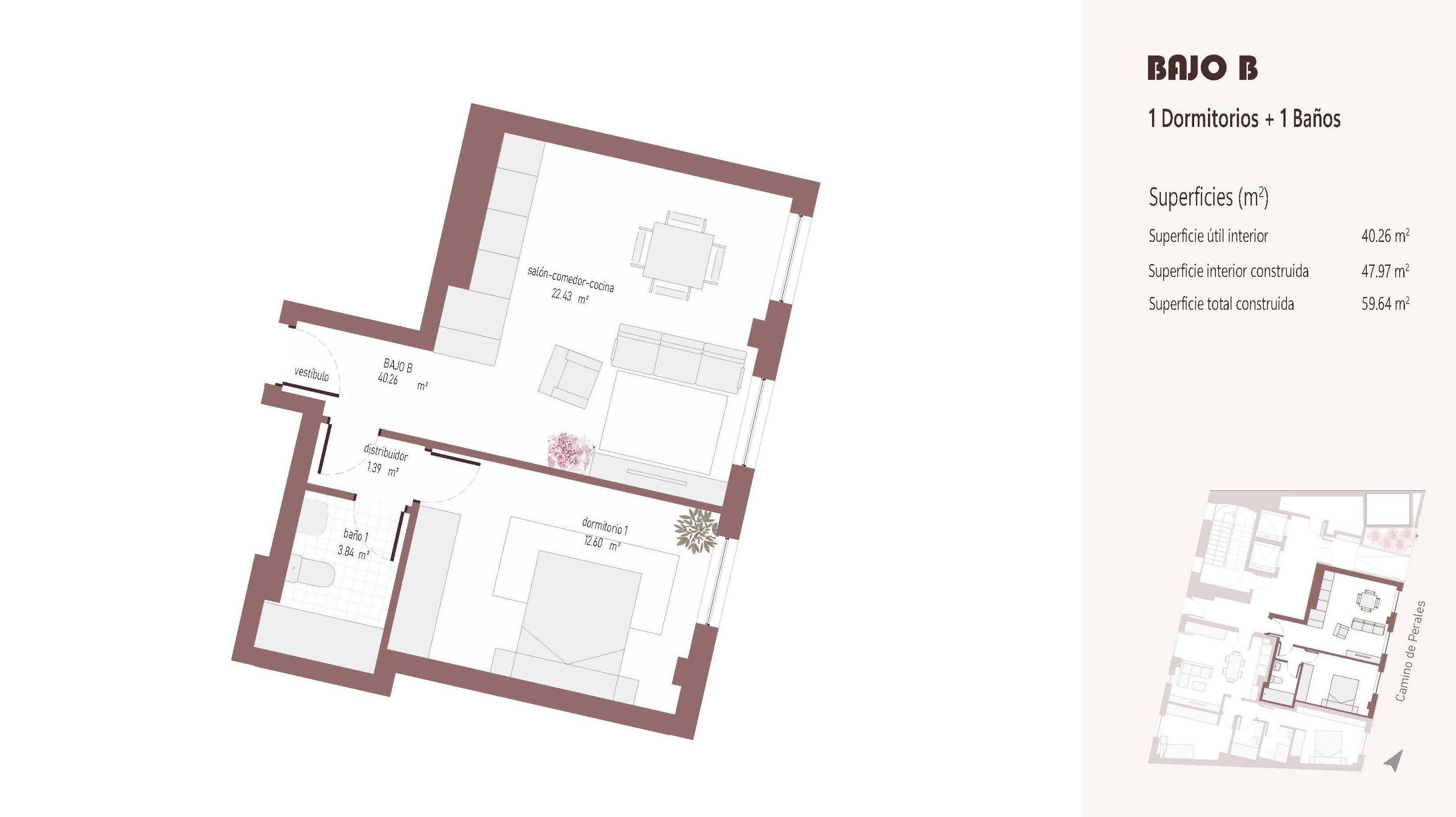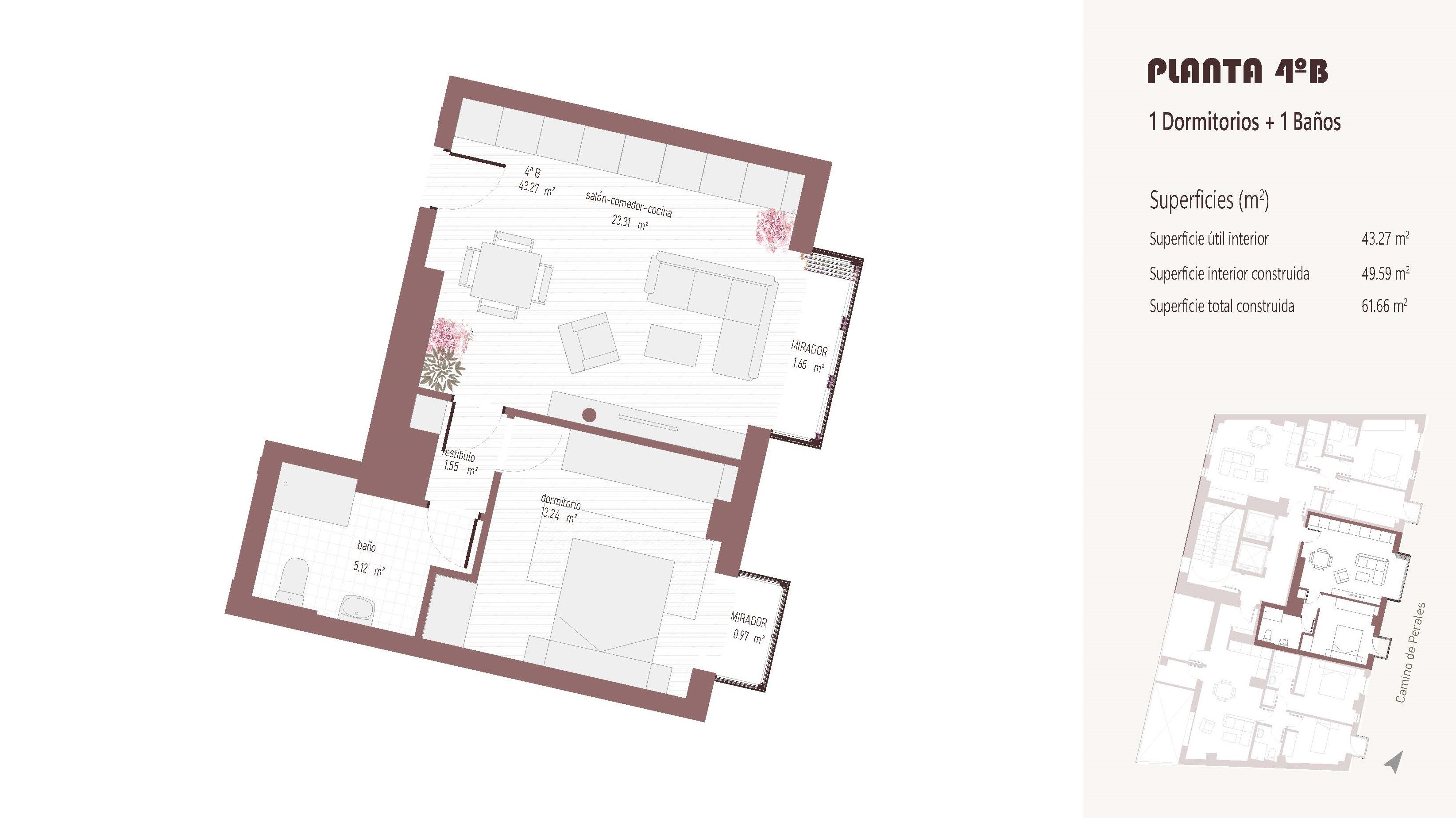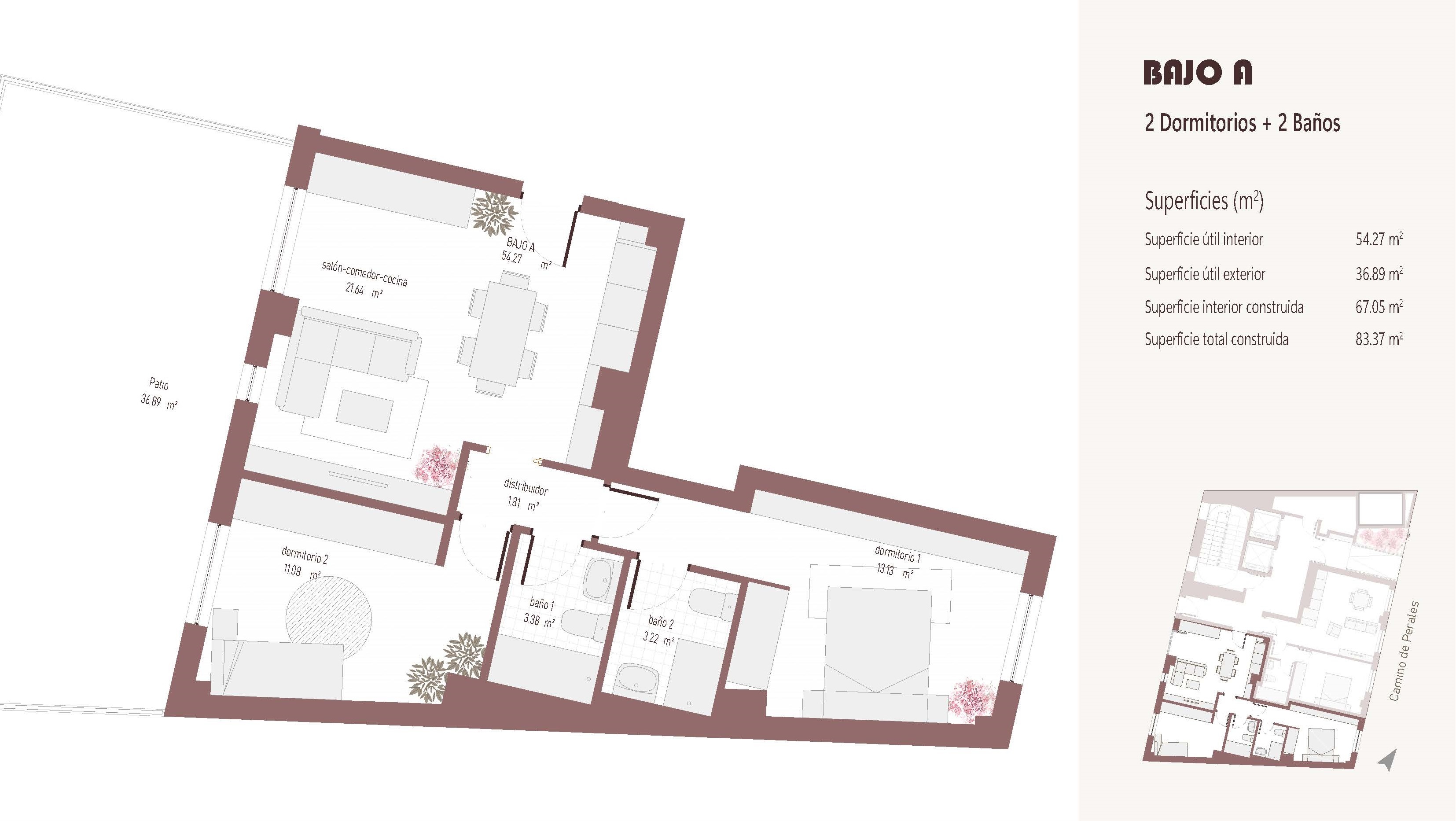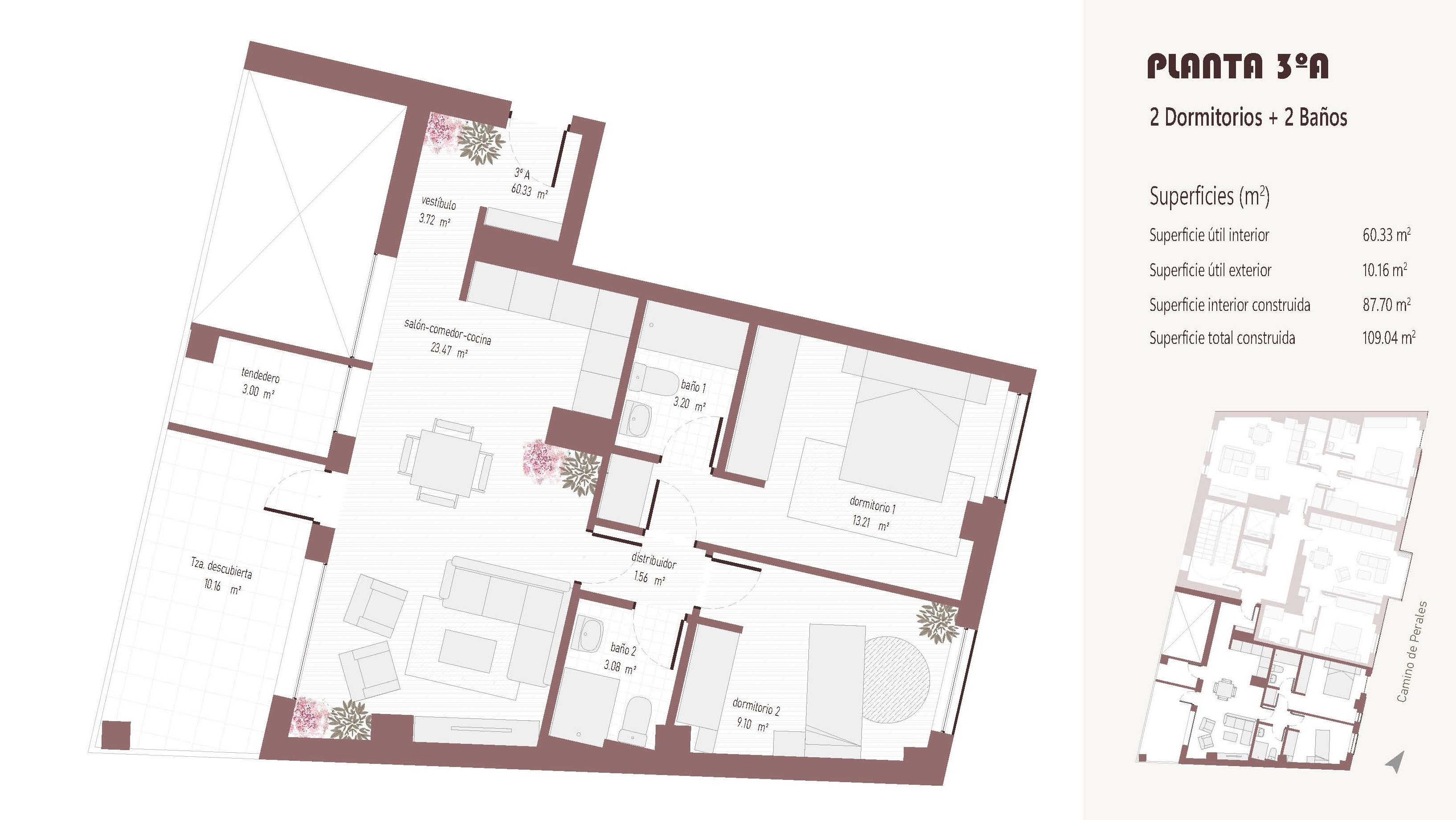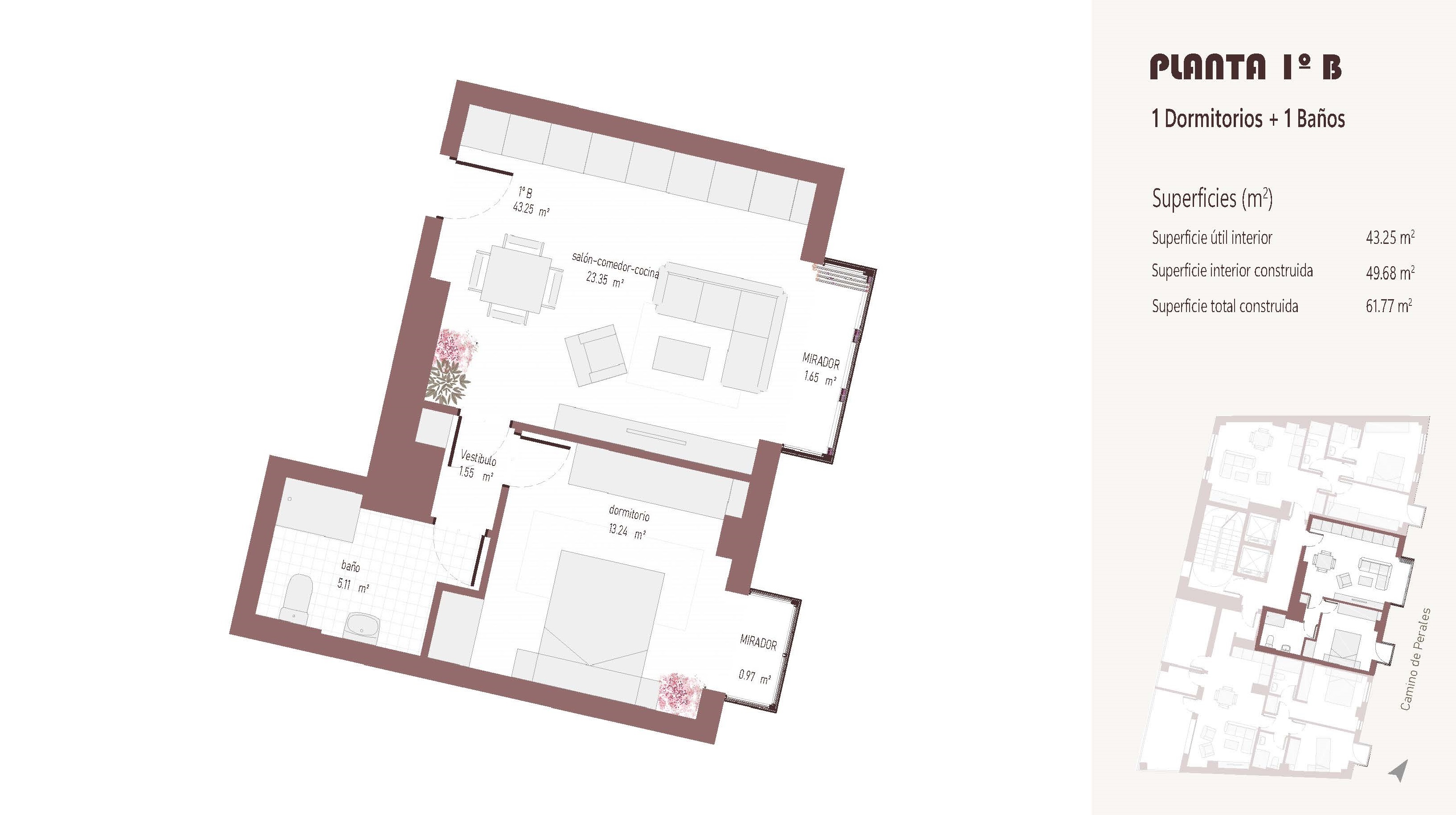 Este Residencial, se ubicará en la calle Camino de Perales 26, Madrid y contará con 16 exclusivas viviendas de 1, 2 y 3 dormitorios, bajo con jardín y 2 áticos, en urbanización privada con zona común y piscina. El Residencial cuenta además con 27 plazas de garaje y 16 trasteros, en el sótano del edificio.