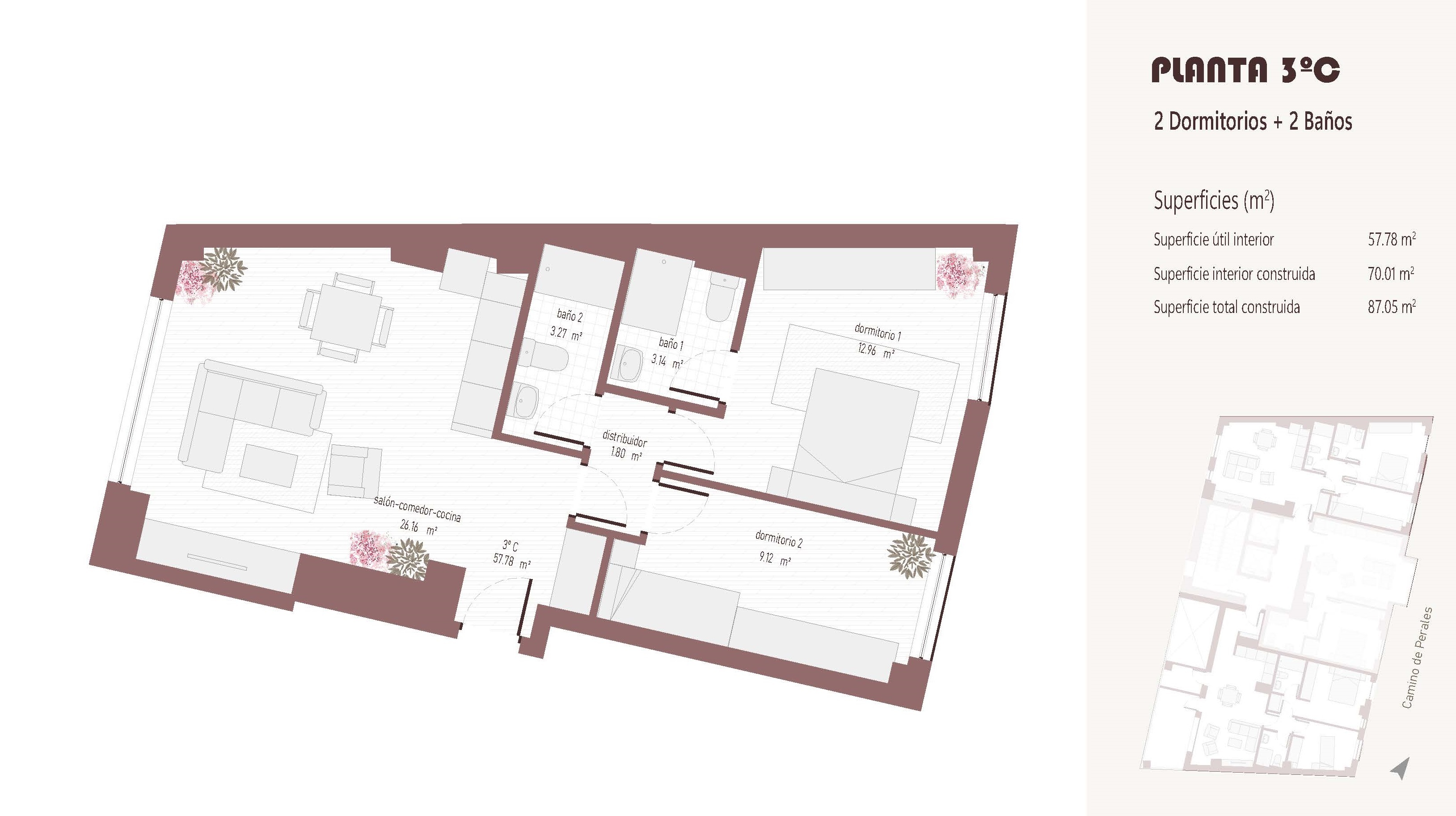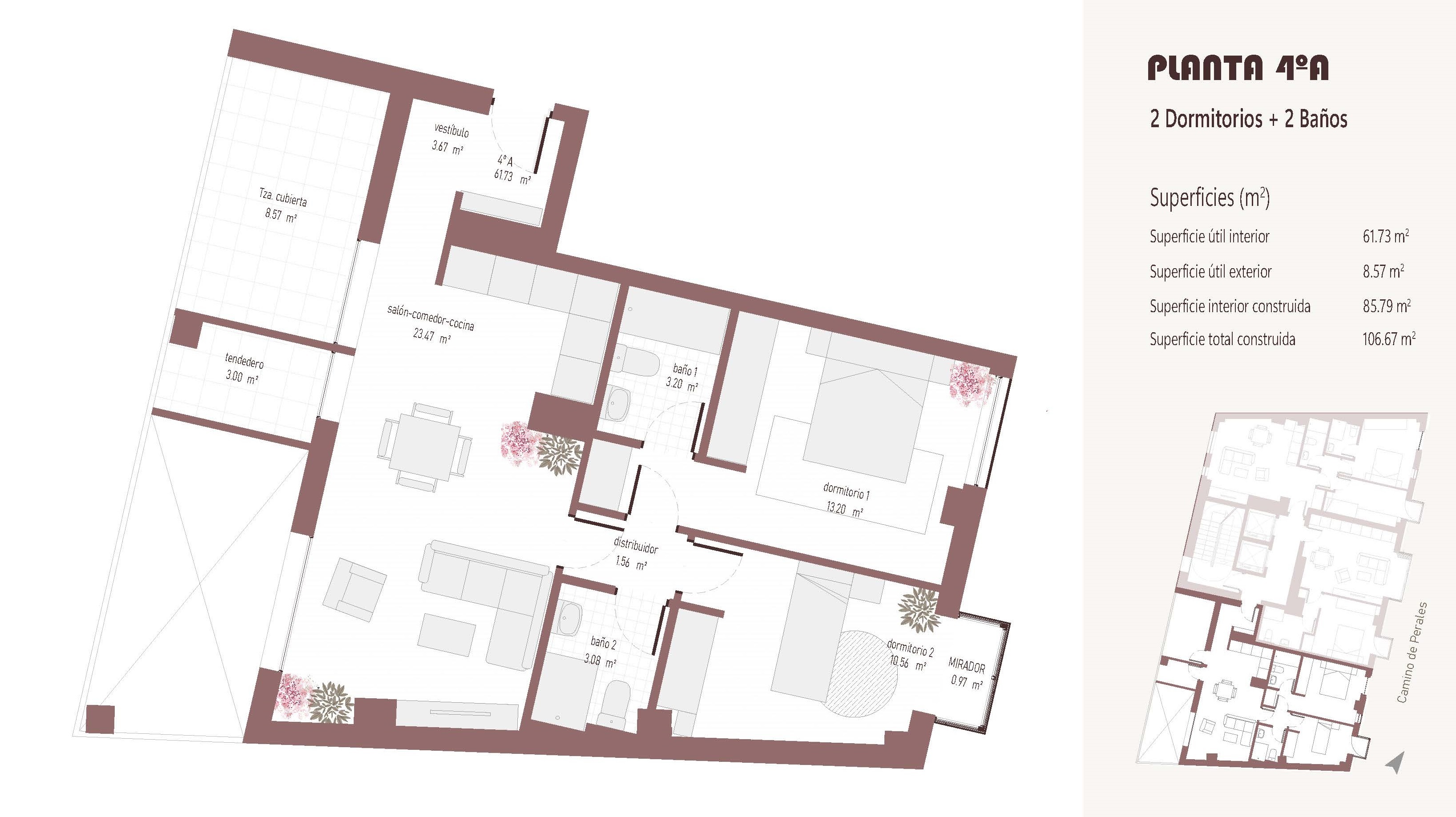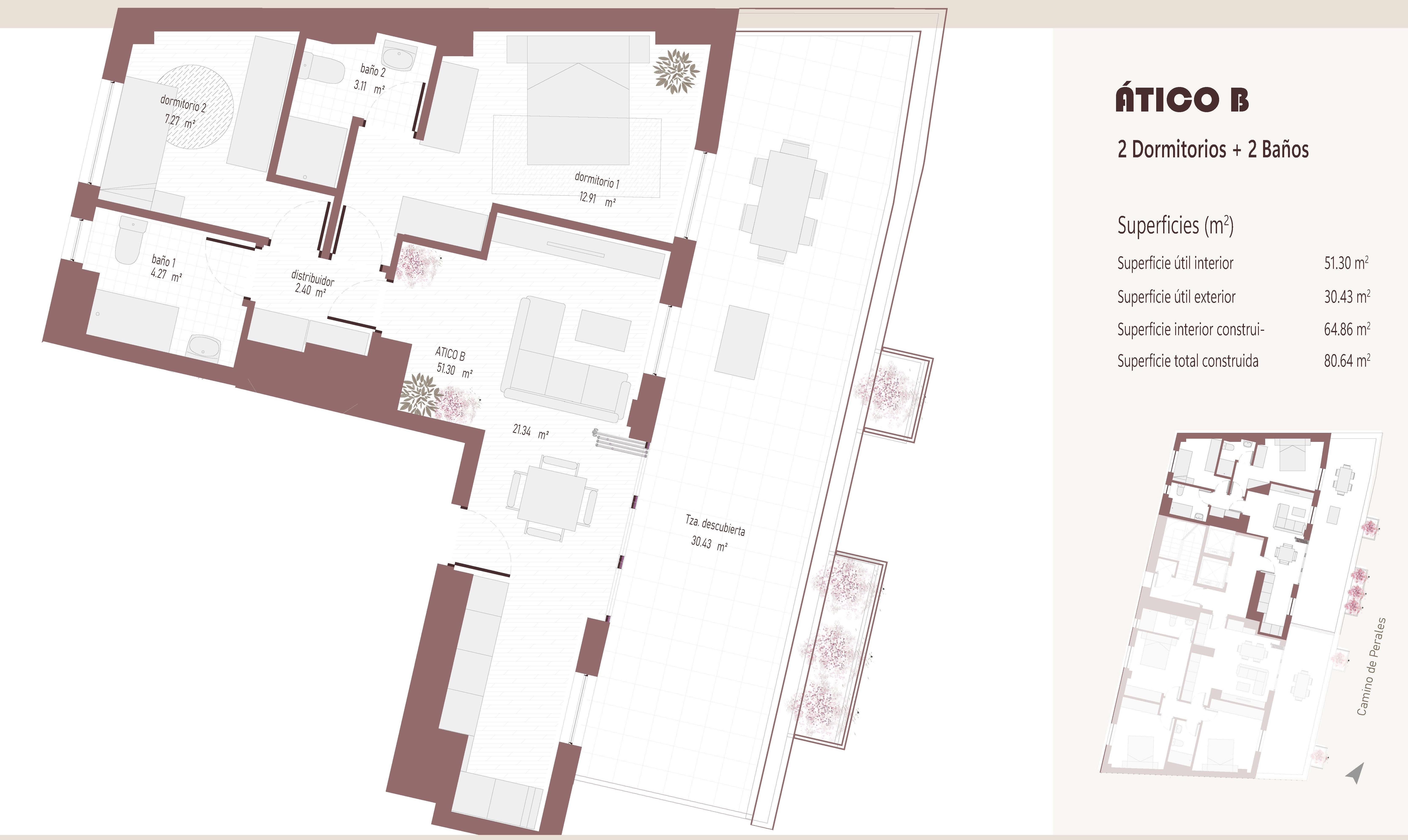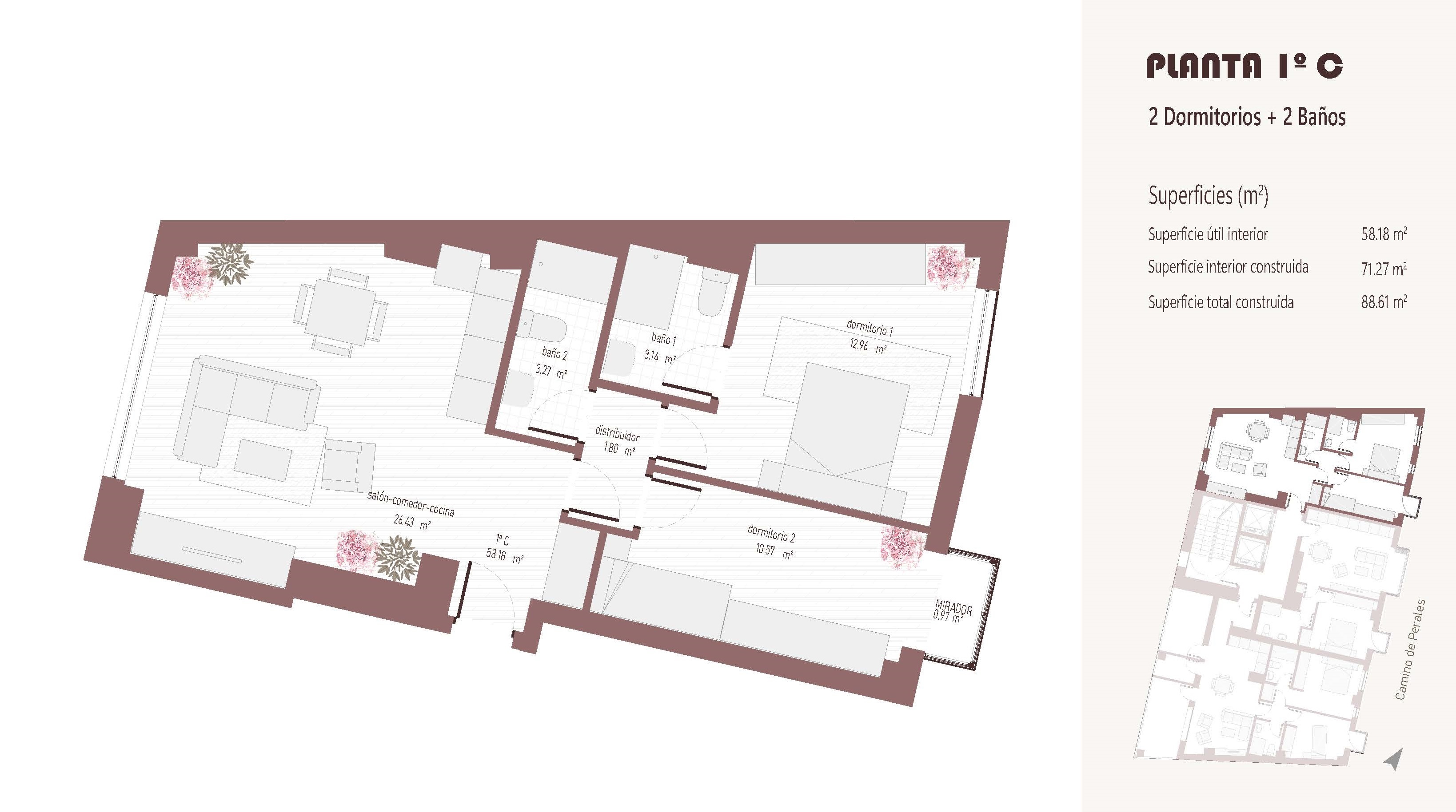 Este Residencial, se ubicará en la calle Camino de Perales 26, Madrid y contará con 16 exclusivas viviendas de 1, 2 y 3 dormitorios, bajo con jardín y 2 áticos, en urbanización privada con zona común y piscina. El Residencial cuenta además con 27 plazas de garaje y 16 trasteros, en el sótano del edificio.
