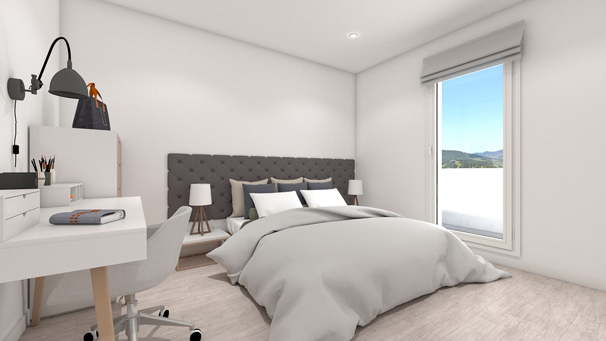 59 viviendas unifamiliares pensadas para vivir en un entorno saludable con un alto confort y respeto por el medioambiente, alcanzando la mayor certificación energética que existe en España, con viviendas de Consumo casi Nulo. Reducimos las demandas de calefacción y refrigeración, aumentando el aislamiento y las altas prestaciones de las carpinterías y acristalamientos, aprovechando además la energía solar limpia y gratuita mediante placas fotovoltaicas para alimentar parte de la energía necesaria para la calefacción, refrigeración y agua caliente sanitaria (ACS) de la vivienda.